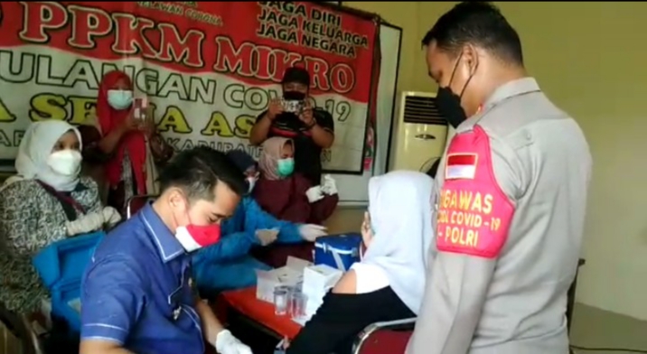 Dengan tetap menerapkan protokol kesehatan, lurah setia asih di bantu petugas kepolisian polsek Tarumajaya bahu membahu melakukan vaksinasi pada ribuan warga yang datang untuk di lakukan vaksinasi.