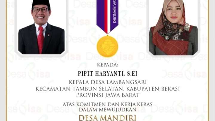 Kabupaten Bekasi– Tokoh masyarakat Desa Lambangsari, Daryanti Rustiana Lestari, mempertanyakan piagam penghargaan yang diberikan oleh Menteri Desa, Pembangunan Daerah Tertinggal, dan Transmigrasi Republik Indonesia kepad kepala Desa Lambangsari, Pipit Haryanti.