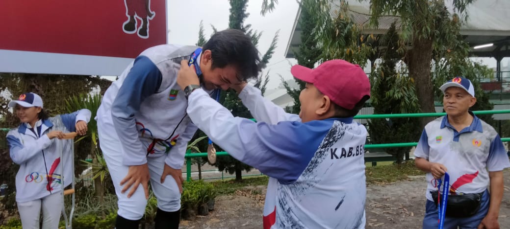 Pada proses penyematan medali, para atlet dan official Pordasi Kabupaten Bekasi, didampingi langsung oleh Ketua Kontingen Kabupaten Bekasi, Dedy Supriadi dan Chef De Mission Kontingen Porprov Jabar Kabupaten Bekasi, Ricky Setiawan Anas, dan tim Monitoring Evaluasi KONI Kabupaten Bekasi(biz).