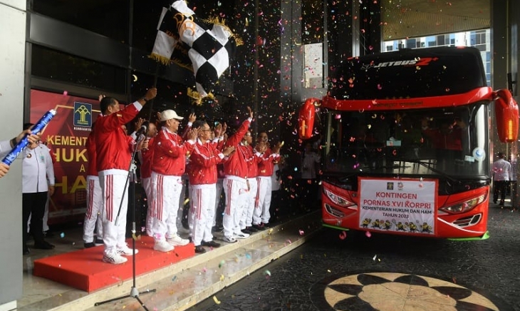 Jakarta – Pekan Olahraga Nasional (Pornas) Tengah. Kementerian Hukum dan Hak Asasi Manusia (Kemenkumham) untuk pertama kalinya akan mengirimkan atlet untuk berlaga, dengan target meraih emas pada setiap cabang olahraga (cabor) yang diikuti Sekretaris Jenderal Kemenkumham, Komjen Pol. Andap Budhi Revianto mengatakan dari enam cabor yang diikuti, para kontingen atlet Kemenkumham harus percaya diri (pede), harus yakin, untuk dapat meraih medali emas.