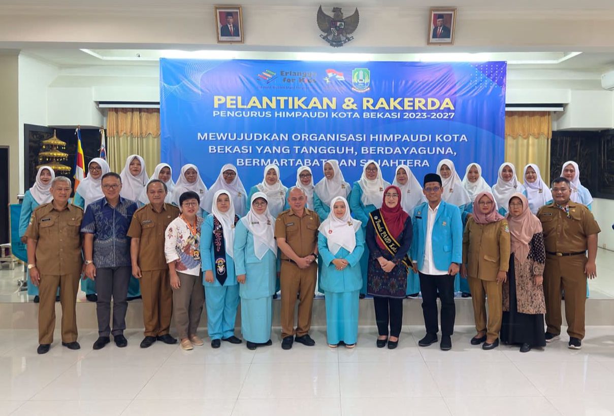 Kota Bekasi – Bunda PAUD Kota Bekasi Yolla Kusuma Gani hadiri Pelantikan dan Rakerda pengurus Himpunan Pendidik dan Tenaga Kependidikan Anak Usia Dini Indonesia (Himpaudi) Kota Bekasi 2023-2027, kegiatan berlangsung di Aula SMP Ananda, Durenjaya, Bekasi Timur.