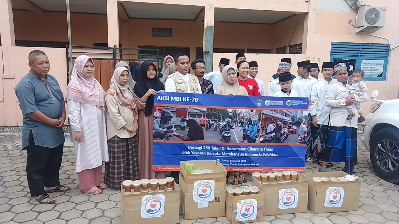 Kabupaten Bekasi – Yayasan Bersatu Membangun Indonesia Sejahtera Kabupaten Bekasi, mengisi kegiatan di bulan suci Ramadhan dengan melaksanakan aksi peduli dengan membagikan 250 takjil untuk berbuka puasa kepada masyarakat dan yayasan Nurul Ulum kp Sinyar Barat 01/04 ,di desa karangsari Kecamatan Cikarang Timur Kabupaten Bekasi Jum’at (15/4/2024).