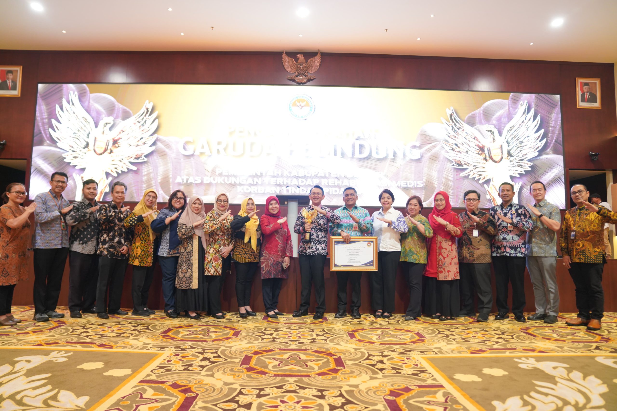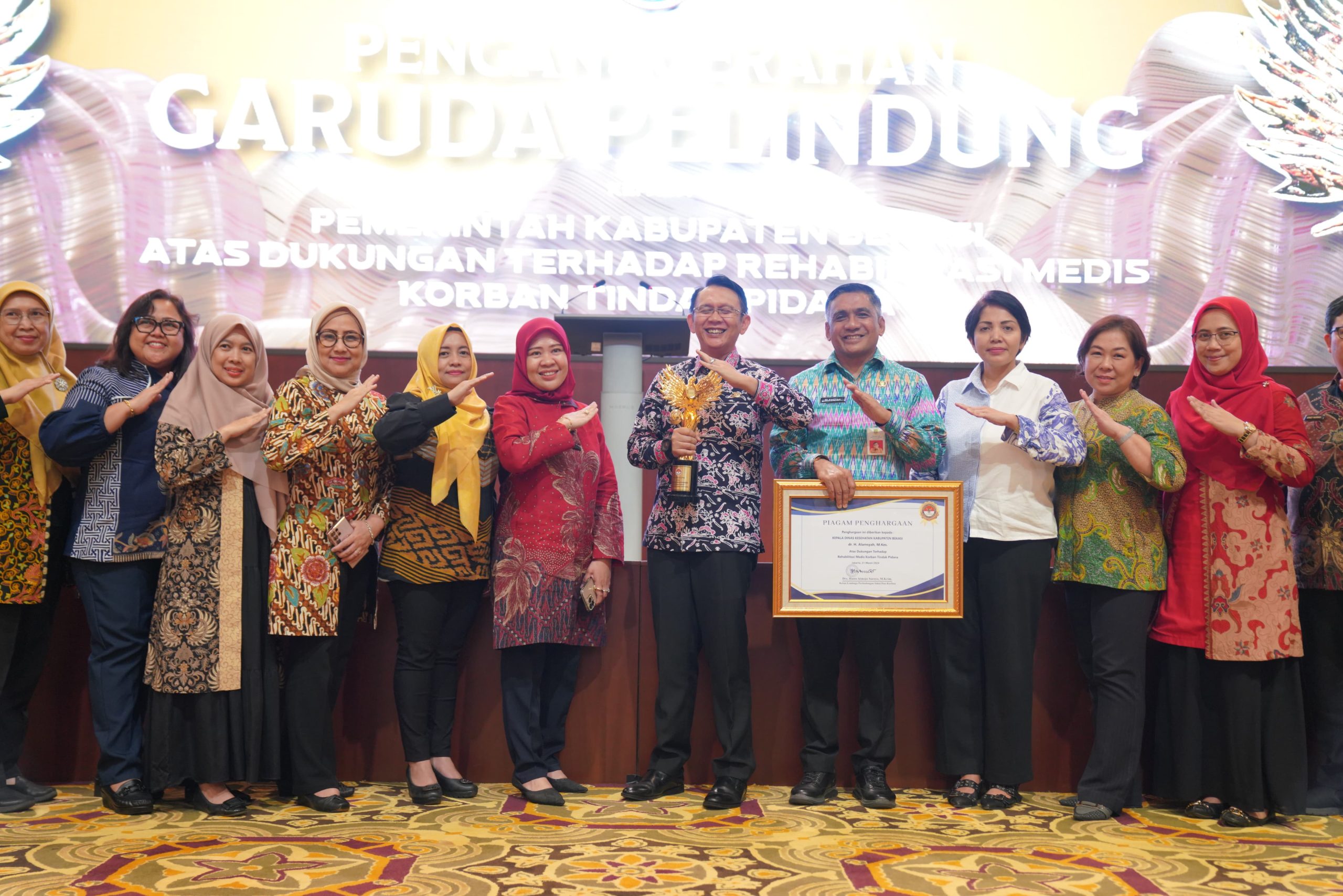 Jakarta – Pemerintah Kabupaten Bekasi menerima penghargaan Garuda Pelindung atas dukungan terhadap rehabilitasi medis korban tindak pidana yang diberikan oleh Lembaga Perlindungan Saksi dan Korban (LPSK) Republik Indonesia. Penghargaan tersebut diterima langsung oleh Pj Bupati Bekasi, Dani Ramdan, di Auditorium Kantor LPSK, Jakarta, pada Kamis (21/3/2024).
