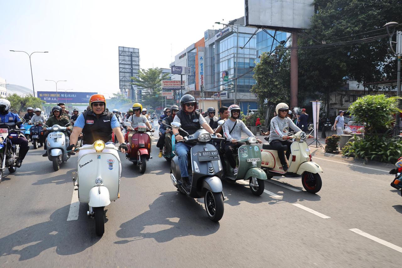 Kota Bekasi – Berbagai cara dilakukan masyarakat untuk menggaungkan semangat kemerdekaan pada HUT ke-80 Republik Indonesia, salah satunya semangat dari para pecinta vespa di Bekasi. Ratusan pecinta vespa yang tegabung dari 25 club komunitas yang ada di Kota maupun kabupaten Bekasi ini, berkumpul dan melakukan jelajah keliling Kota Bekasi bersama Wakil Wali Kota Bekasi Abdul Harris Bobihoe.