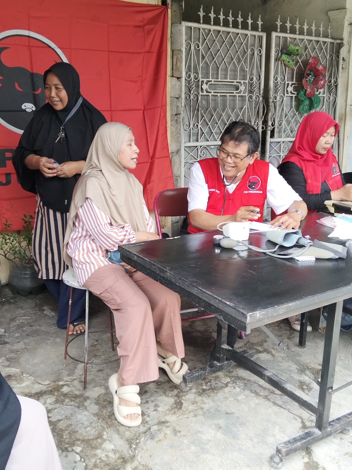 Pengobatan gratis tersebut ditangani langsung oleh dr. Ferry Parluhutan Sirait dan dibantu rekan-rekan kader Pengurus Anak Cabang (PAC) Ranting Tambun Selatan. Ia mengatakan, sebagian besar warga datang dengan keluhan penyakit ringan yang umum terjadi setelah banjir.