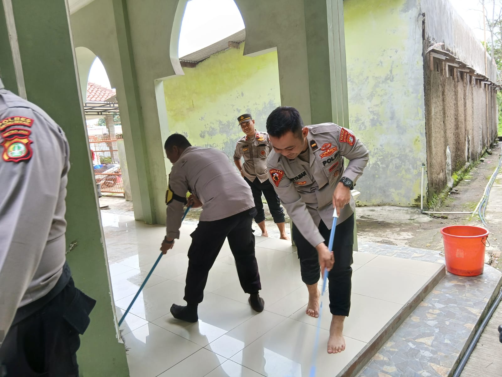 Dalam pelaksanaannya, personel melakukan pembersihan halaman masjid, membersihkan fasilitas kamar mandi, serta menata dan memberikan pengharum ruangan di dalam masjid. Suasana kebersamaan dan gotong royong tampak terasa, mencerminkan sinergi antara kepolisian dan masyarakat dalam menjaga tempat ibadah tetap bersih, nyaman, dan layak digunakan.