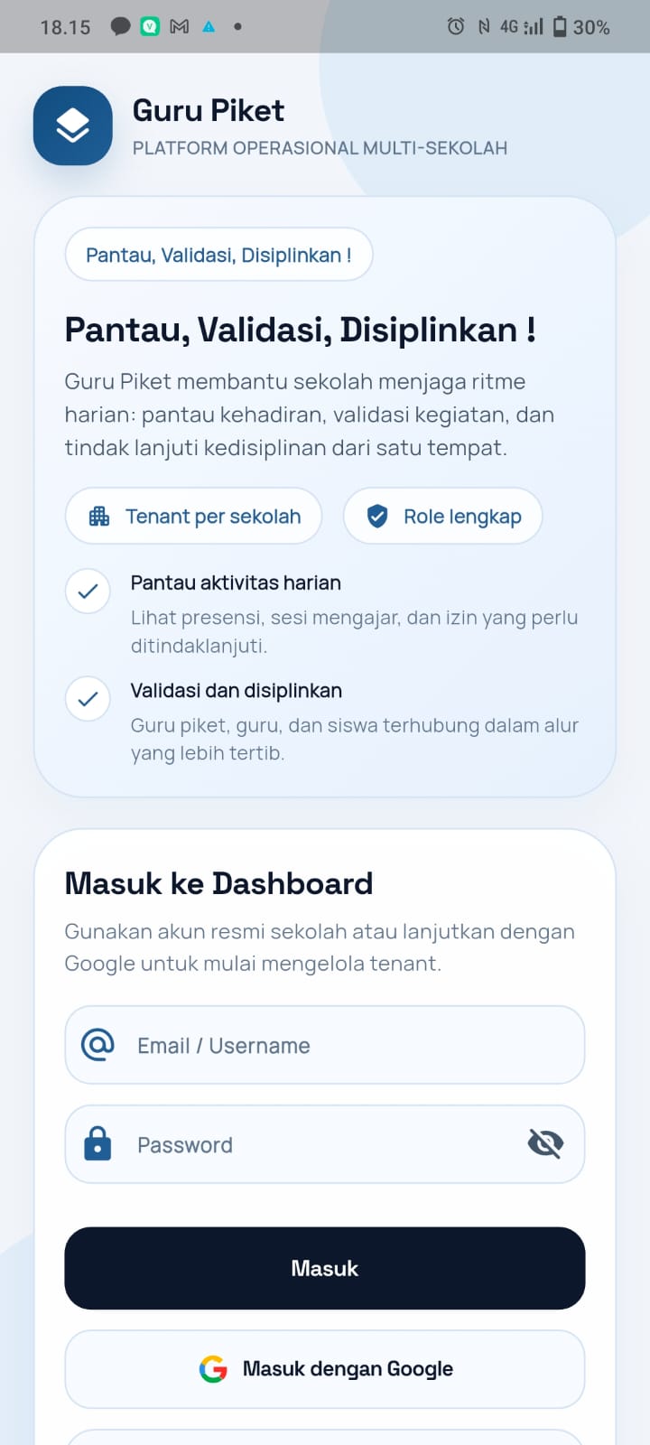 ‎Aplikasi GURU PIKET hadir sebagai solusi atas tantangan administrasi sekolah konvensional. Dengan sistem ini, pengelolaan tugas guru piket kini dilakukan secara terstruktur, terdokumentasi dengan baik, dan dapat dipantau secara real-time.